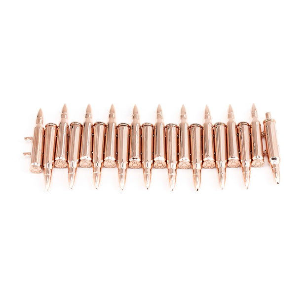 Reproduced brass .223 Remington bullet, bathed in rose gold, yellow gold, rhodium, black rhodium, or tri-color.